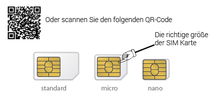 Variante 2: Verwenden Sie Ihre eigene SIM-Karte mit einer Internetverbindung. Es muss eine Micro-SIM-Karte ohne PIN-Code sein.